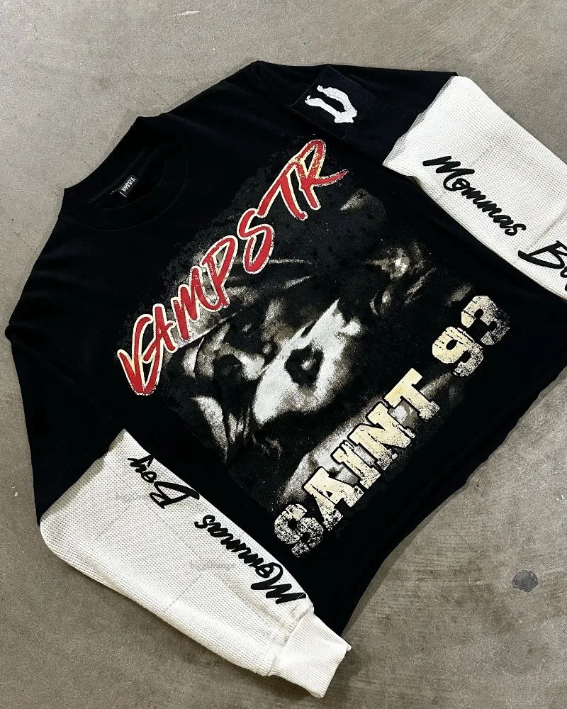 Punk Rock Letter Print Fake Two-Piece Top – Streetwear